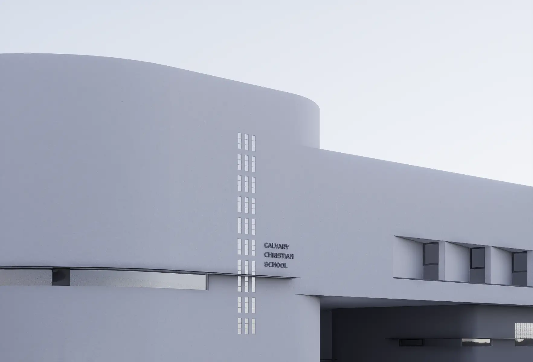 Calvary Christian School is designed to serve elementary and junior high students, organized into two distinct wings that converge at a central mass. This central core houses the school’s communal facilities, including the library and multi-purpose hall, encouraging interaction and shared experiences among different age groups. A large skylight above the central space brings in ample natural light, reducing the need for artificial lighting during the day and creating a warm, uplifting atmosphere at the heart of the campus.