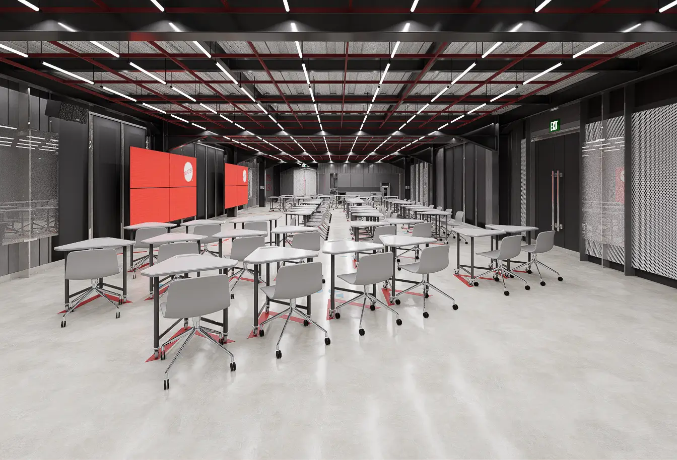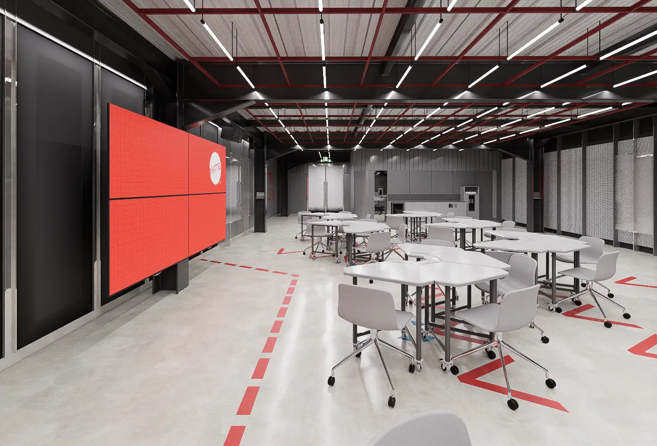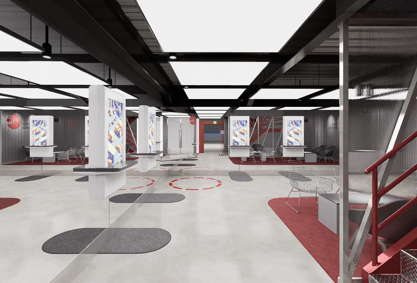 The aesthetic approach of the Lean Center balances industrial clarity with comfort and adaptability, creating an environment that encourages productivity, collaboration, and ease of use.
